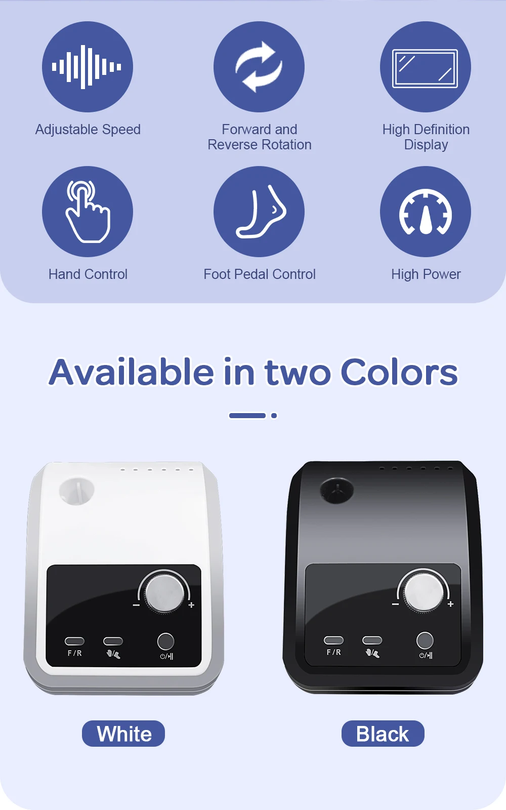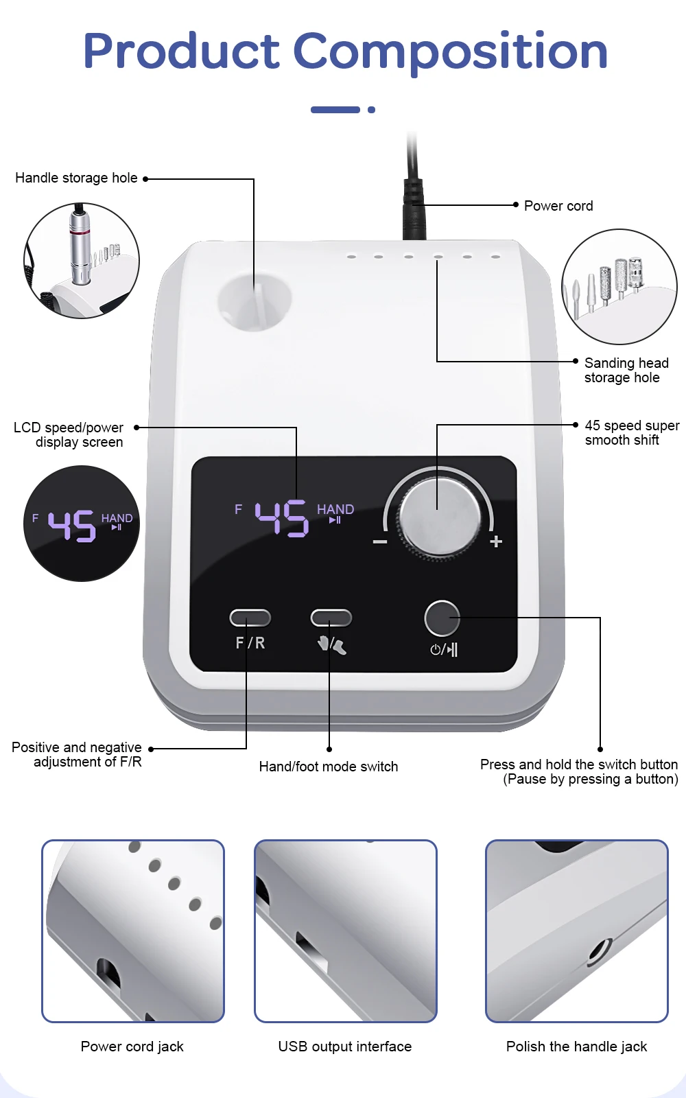 【 Low Heat/Noise】: The professional nail drill for acrylic nails is designed with a brushless motor, aluminum alloy body, high-quality bearings and internal cooling system.